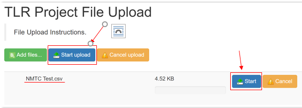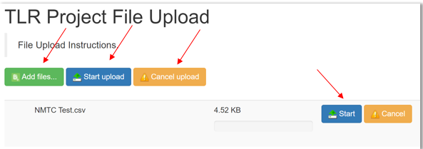 To cancel an upload mid-progress, click on “Cancel Upload.” This will delete any document already selected. To start a new upload, click on “Add Files,” select the correct upload document and click “Start Upload.”