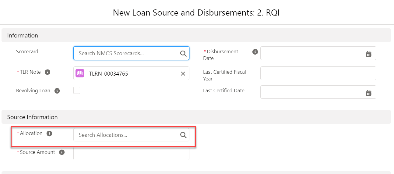 Note: Click on the search icon to search for the Allocation the Loan Source record is associated with.