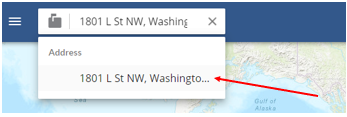 The CDFI Fund requires that Organizations confirm that all addresses are geocodable with a new Esri verification process. If users enter an incorrect address, the new ESRI address verification process will send an error message informing users of the address accuracy score and a possible alternative to the entered address. Users will be required to correct and re-enter the address or an alternative location indicator. (Please see image below.)