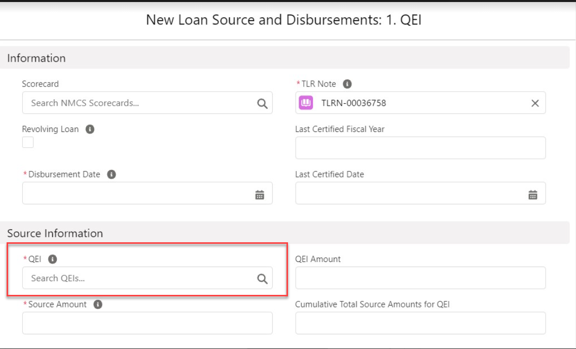 Note: Click on the search icon to search for the QEI the Loan Source record is associated with.