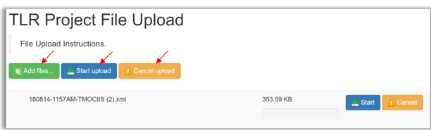 The upload document must be formatted in Extensible Markup Language (.xml). If the wrong file is selected in error, click on “Cancel Upload.”