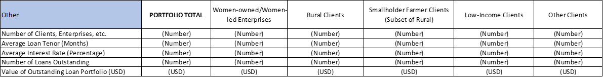 Paperwork Reduction Act Notice: This information is required to retain benefits. Federal agencies may not collect information unless a valid OMB Control Number with an expiration date that has not expired is displayed. The public reporting burden for this collection of information is estimated to average 2.0 hours per response, including the time for reviewing instructions, searching existing data sources, gathering and maintaining the data needed, and completing and reviewing the collection of information. Send comments regarding this burden estimate or any other aspects of this collection of information, including suggestions for reducing this burden, to Agency Clearance Officer, Records Management, United States International Development Finance Corporation 1100 New York Ave., NW, Washington, DC 20527 and to the DFC Desk Officer at the Office of Information and Regulatory Affairs, Office of Management and Budget, New Executive Office Building, Room 10202, Washington, D.C. 20503.