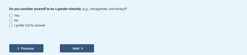 Response distribution, specifically, the percentage of respondents who identify as a gender minority4