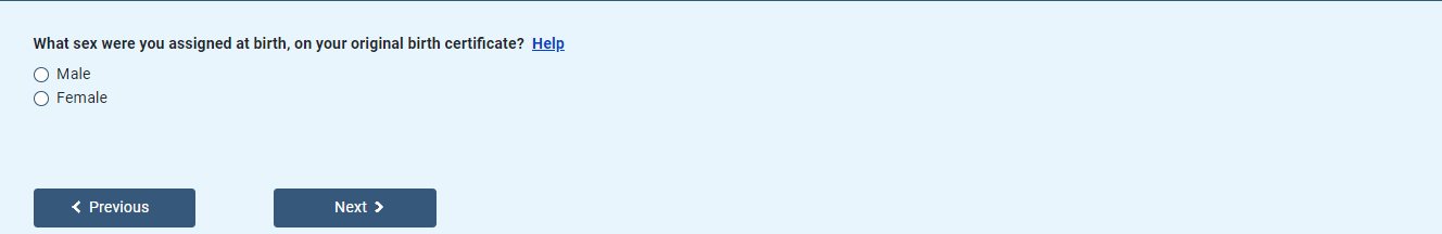 Before asking about a respondent’s current gender identity, the survey asked about their sex assigned at birth. Both the production instrument and Bridge Panel instrument used the question shown in Figure 1.