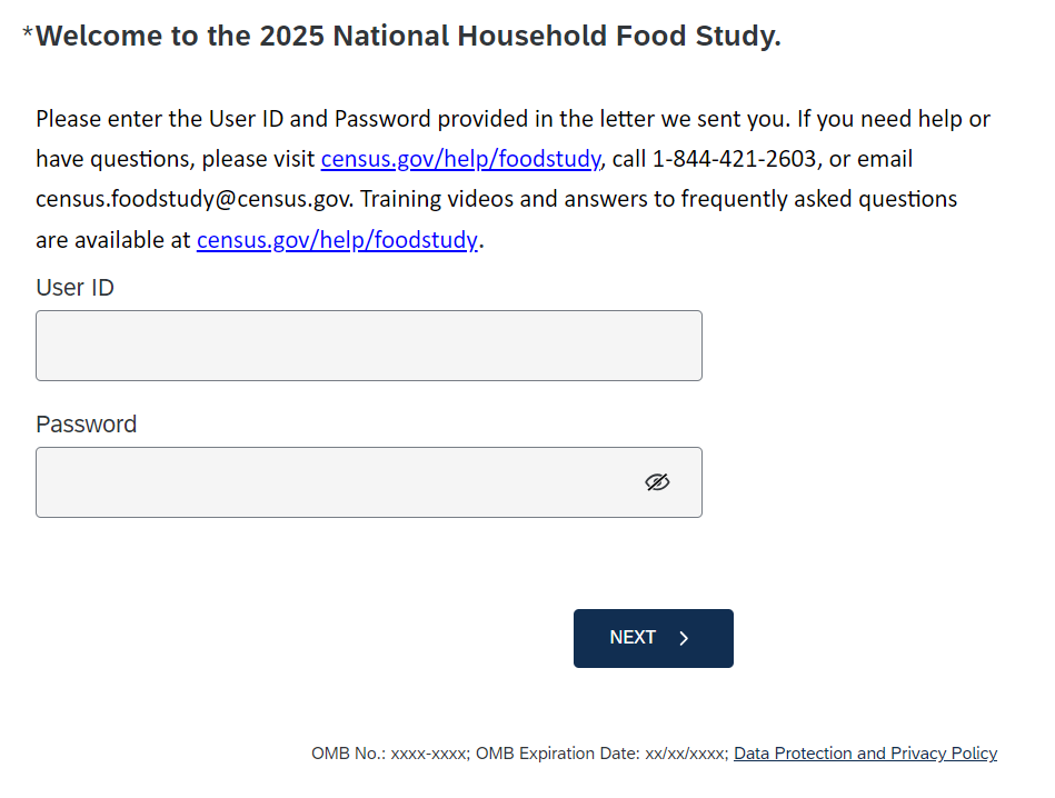 Start Screen with OMB Number