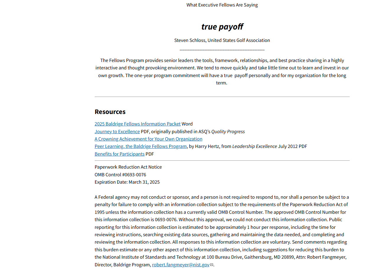 Baldrige Executive Fellows Program