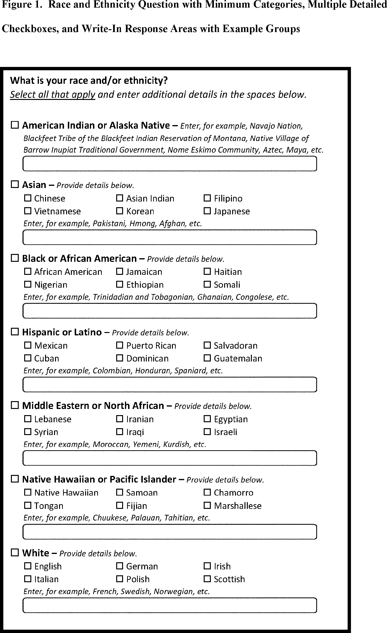2-page format -Participants select the minimum categories that apply, and then they select the detailed categories on the next page |