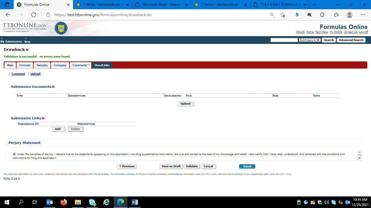 The user then accepts the Perjury Statement and clicks “Submit.” The user will receive a successful submission message: