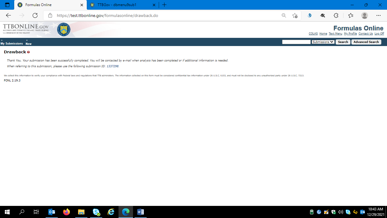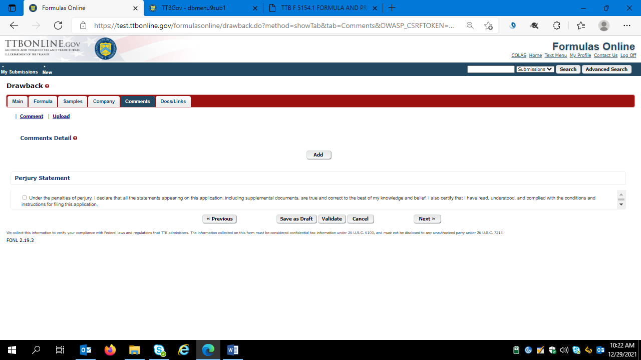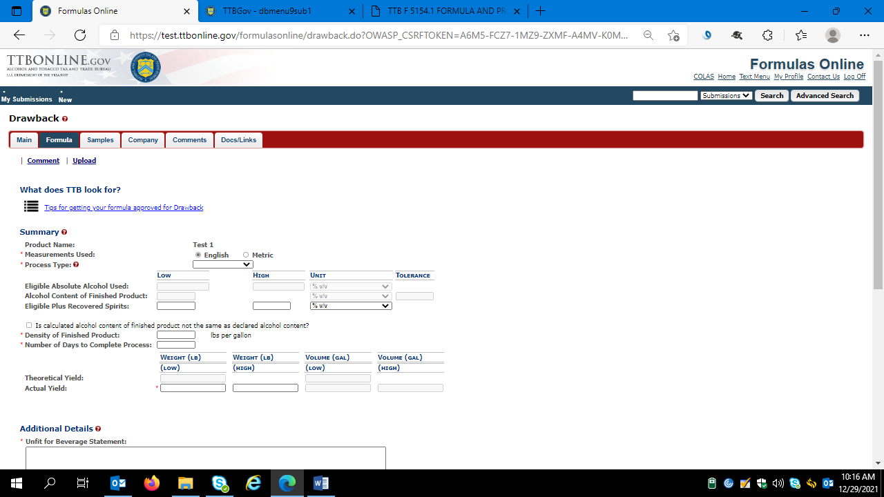 (Equivalent to TTB F 5154.1, Formula and Process for Nonbeverage Products)