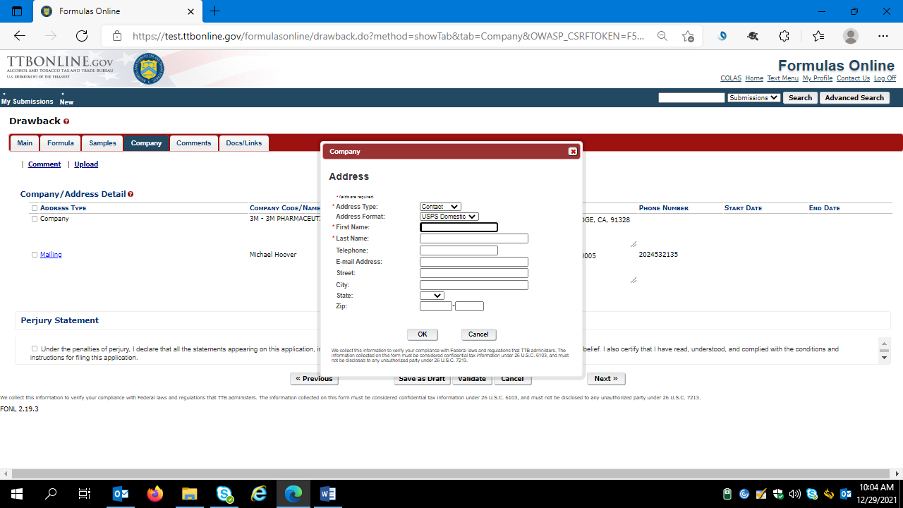Formulas Online (FONL) — Nonbeverage Formula and Process Application