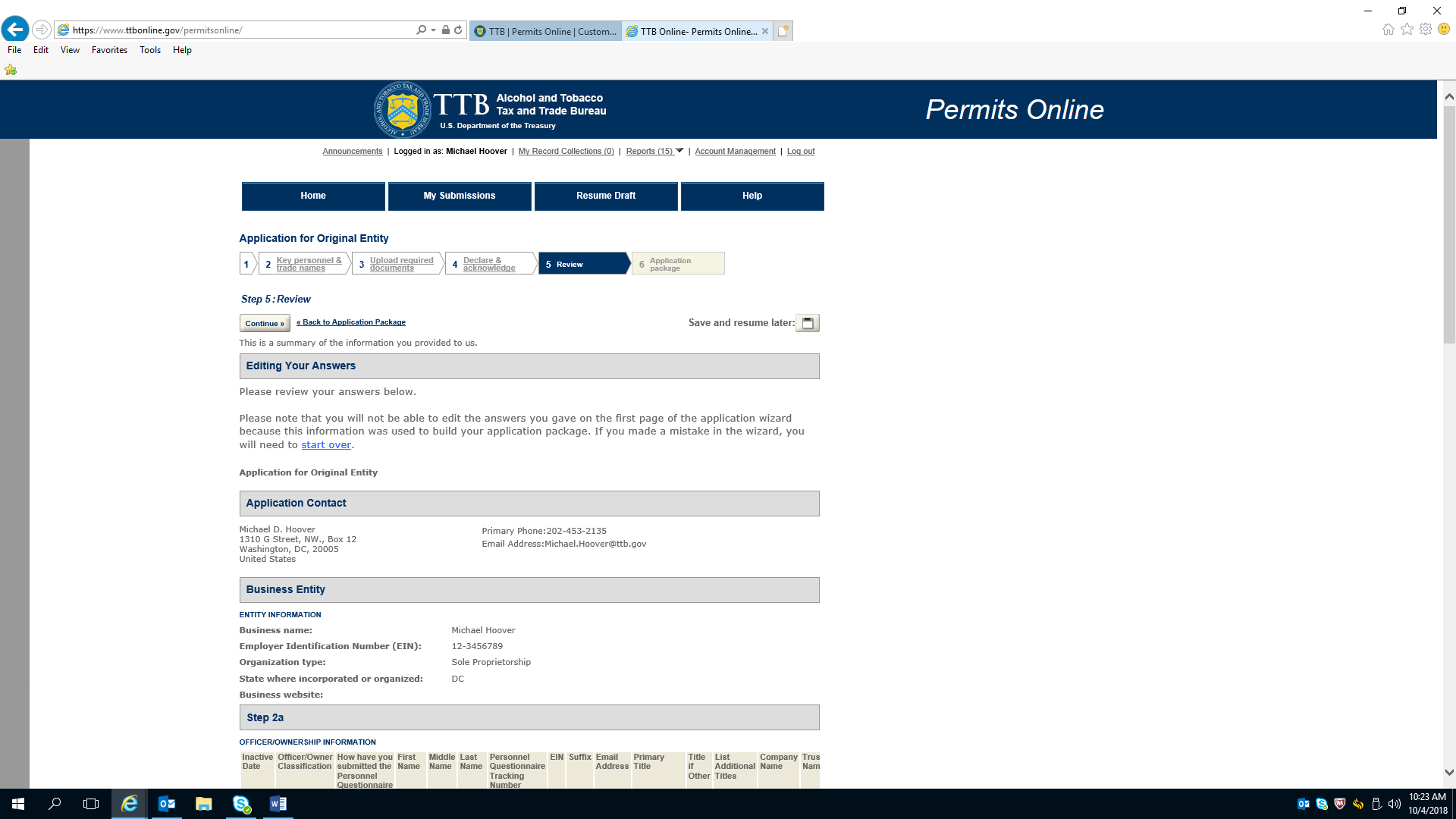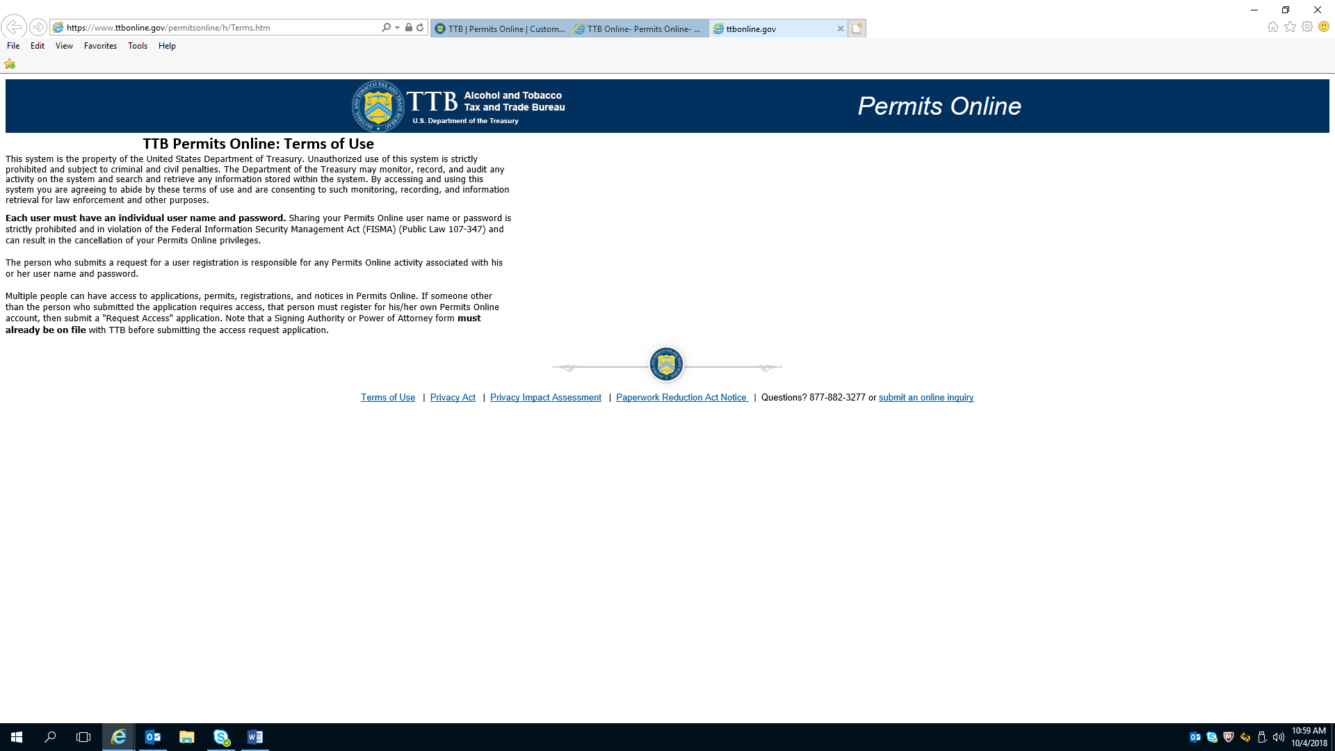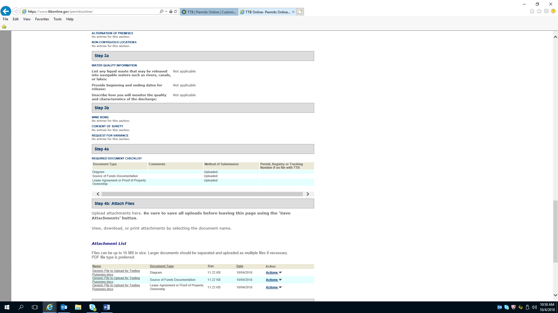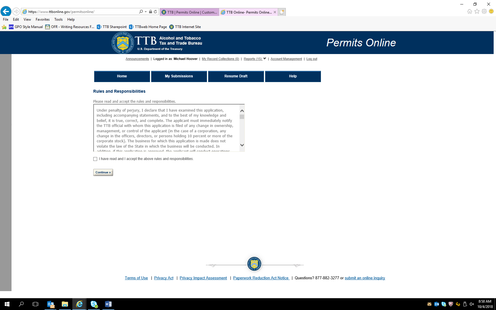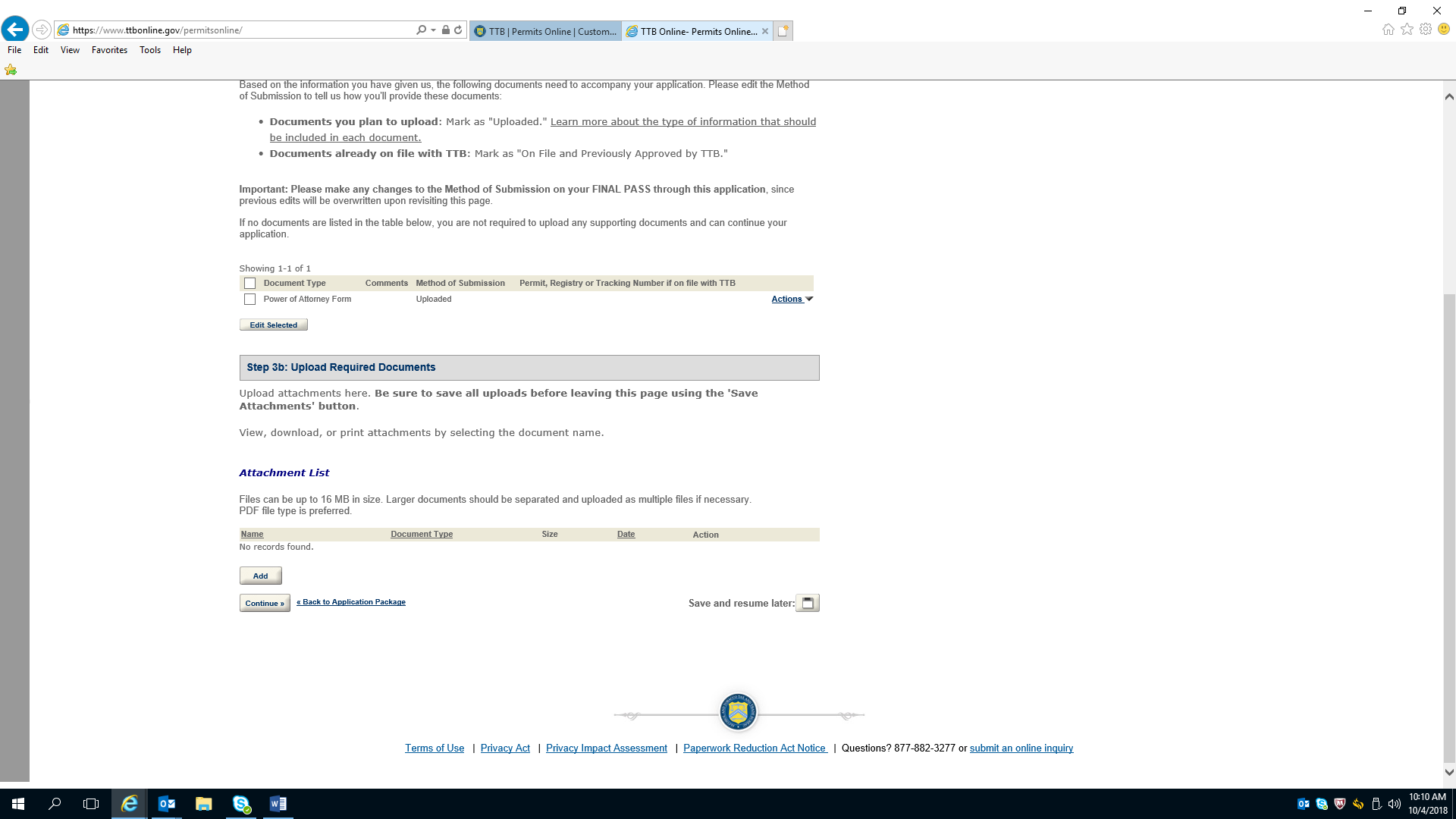 Permits Online Screen Shots — New DSP or Bonded Wine Premises FAA Act Basic Permit Applications (OMB Control No. 1513–0018) (10-2018)