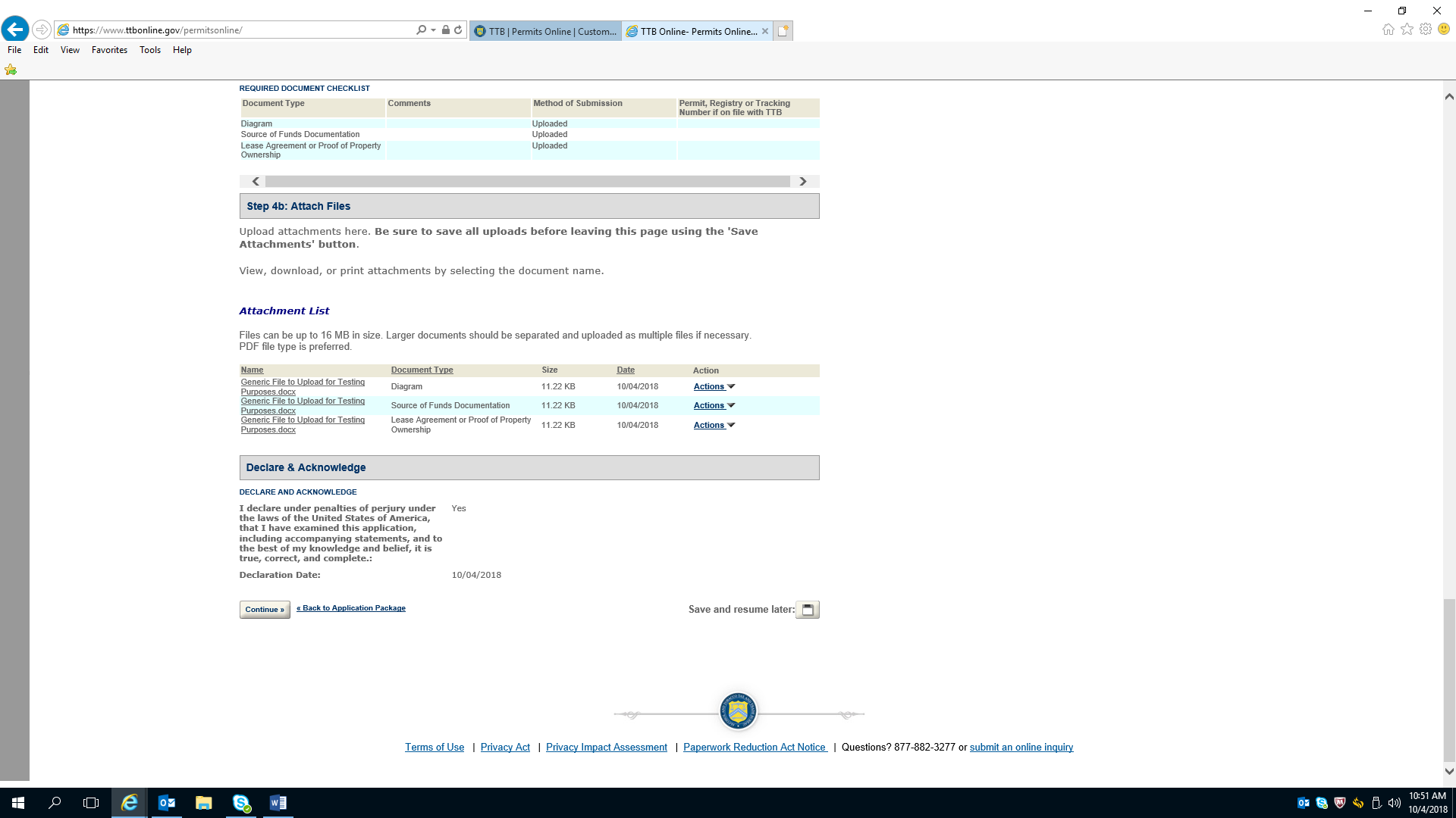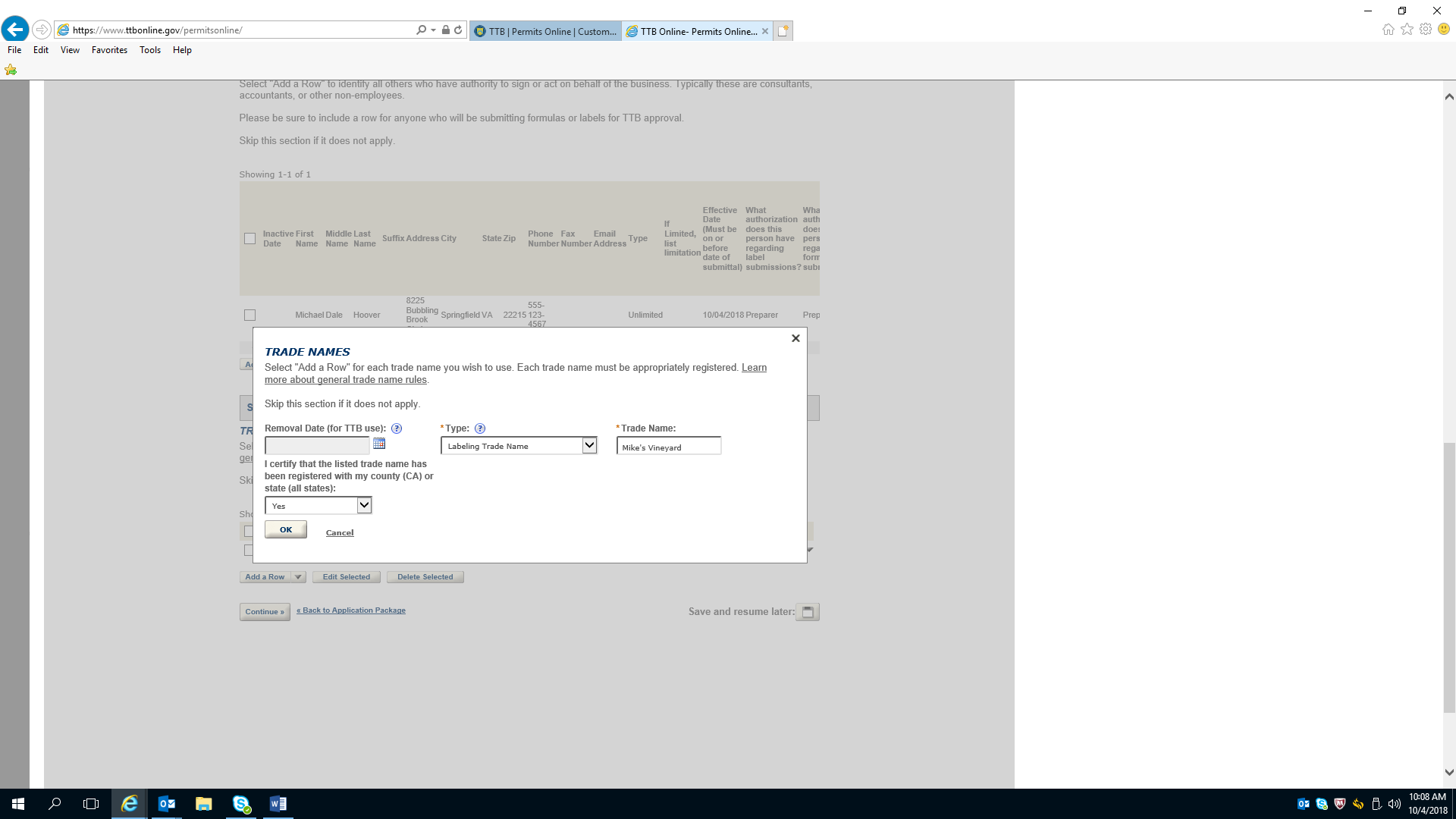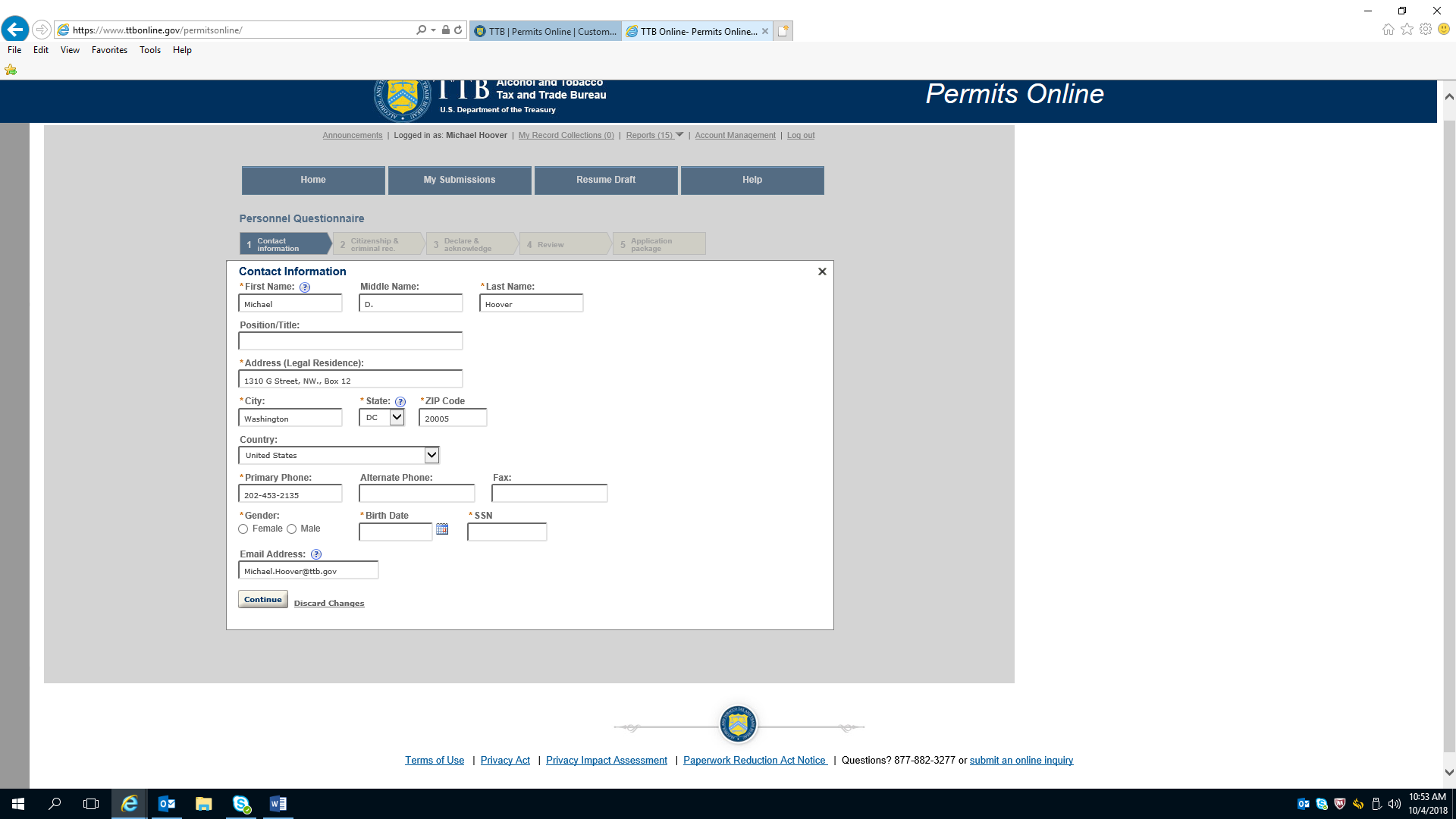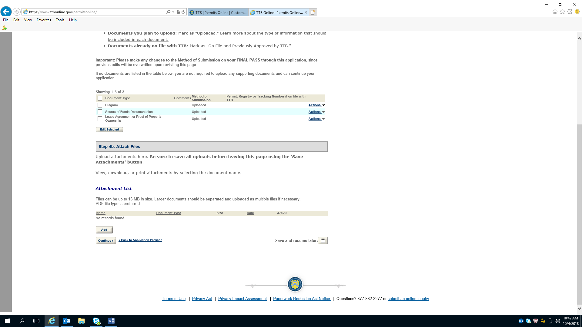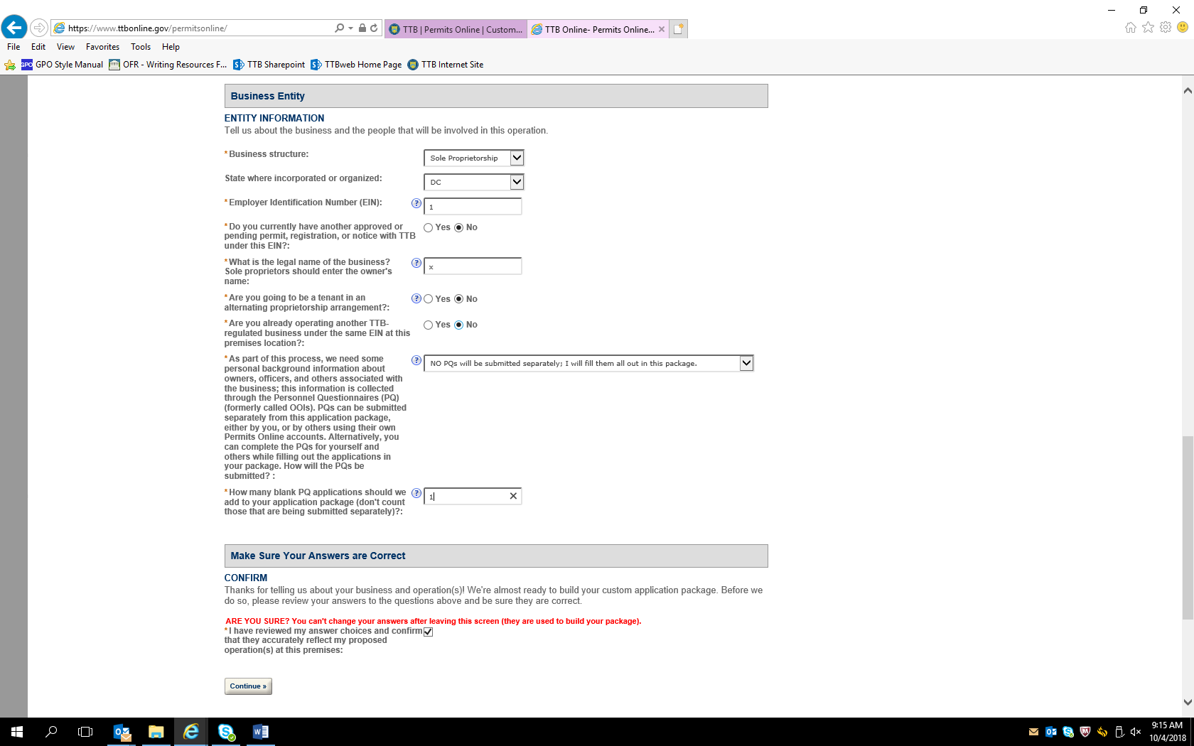Permits Online Screen Shots — New DSP or Bonded Wine Premises FAA Act Basic Permit Applications (OMB Control No. 1513–0018) (10-2018)