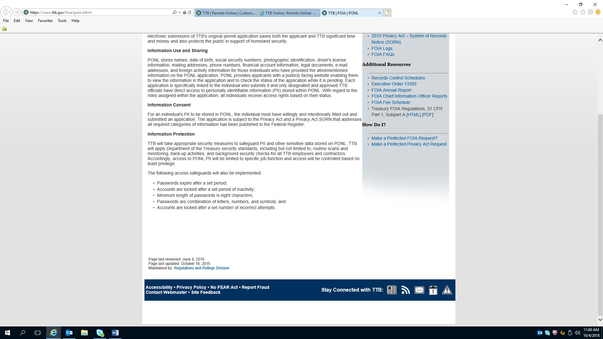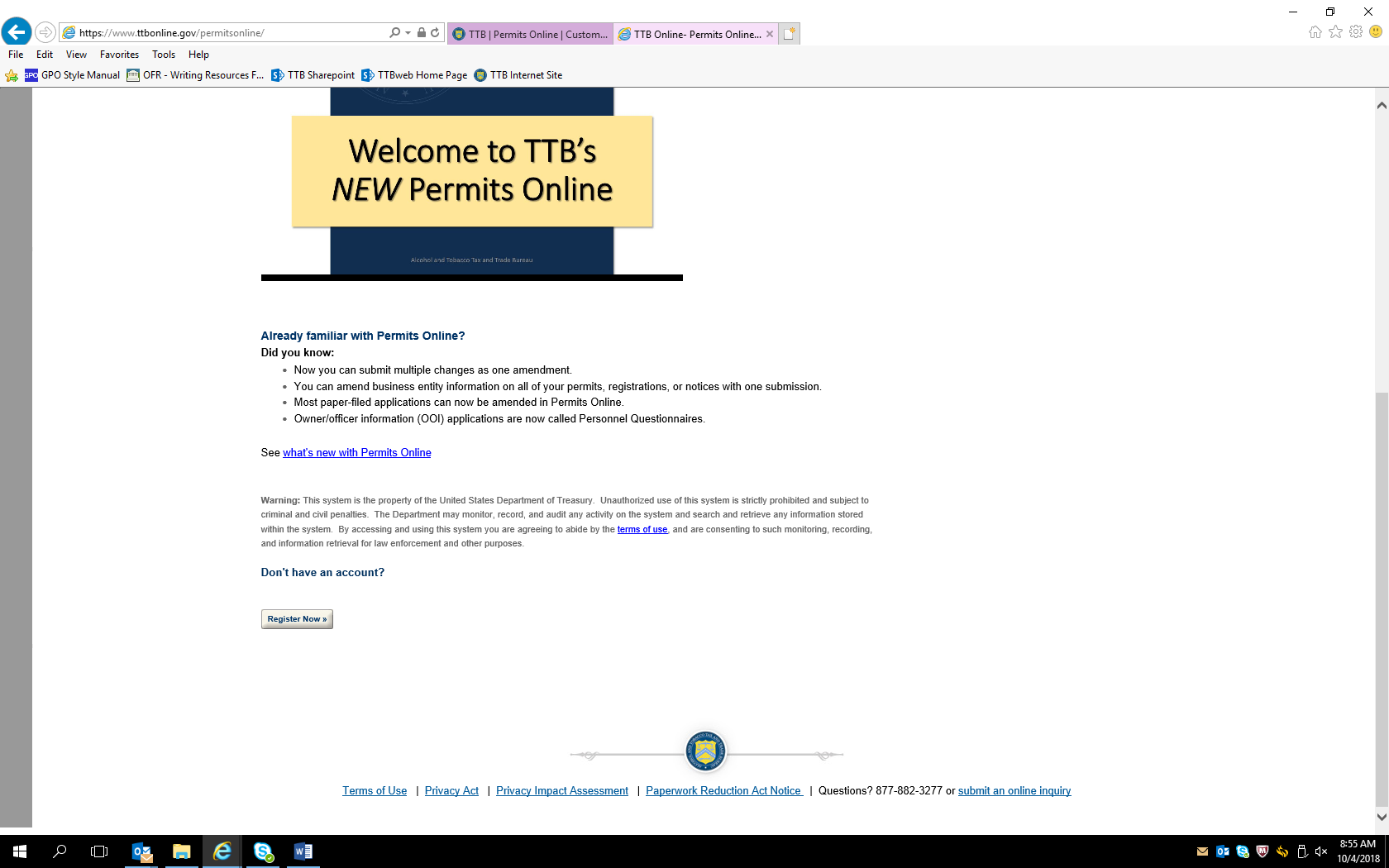 Permits Online (PONL), New Distilled Spirits or Bonded Wine Premises Applications — for OMB Control No. 1513–0018, Application for Basic Permit under the Federal Alcohol Administration Act).