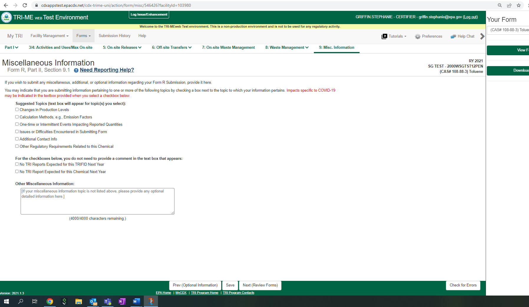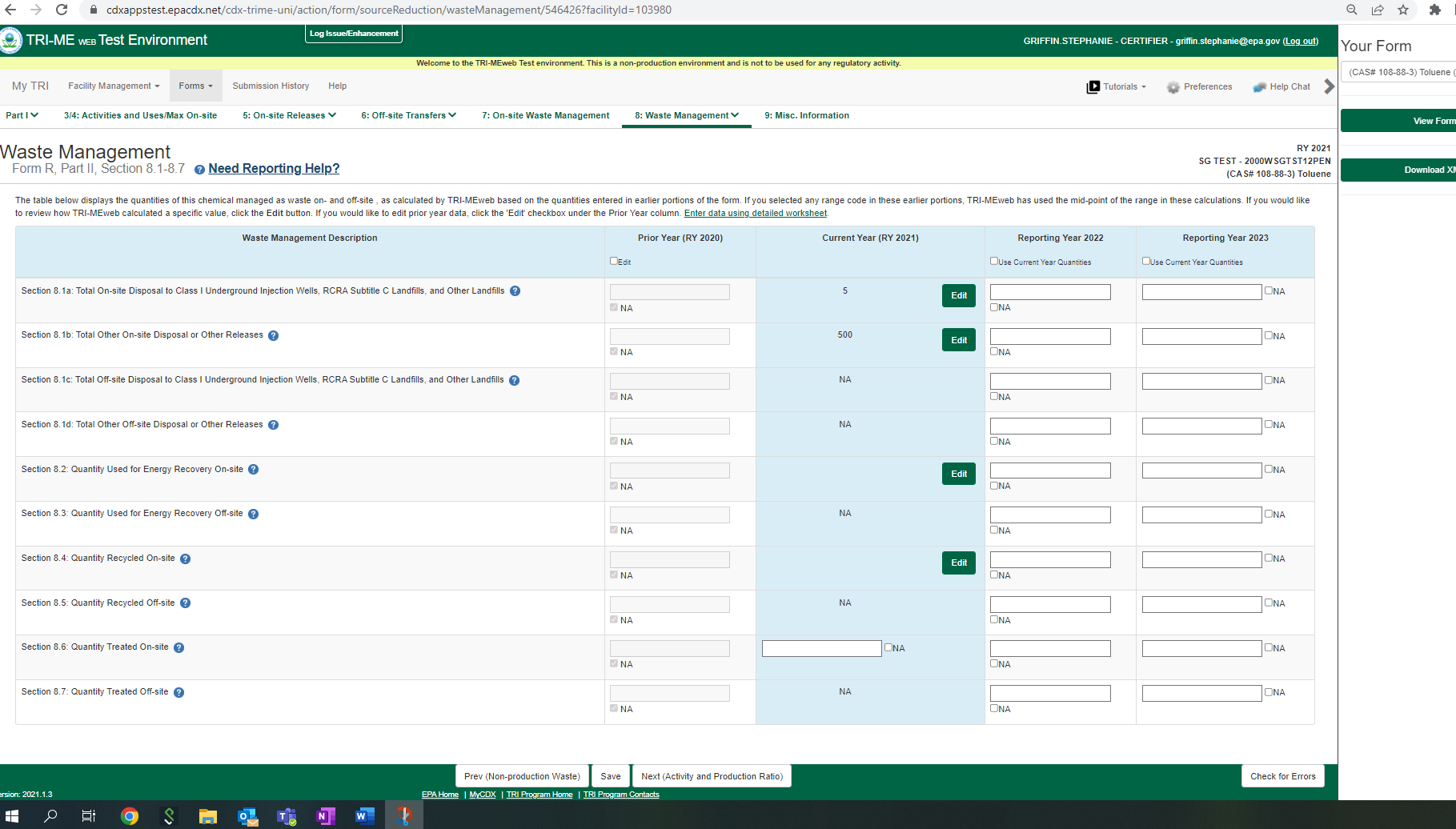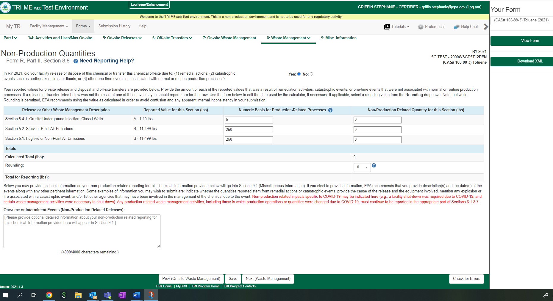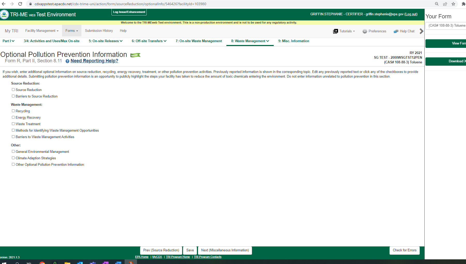 Toxic Chemical Release Reporting (Non-substantive Change)