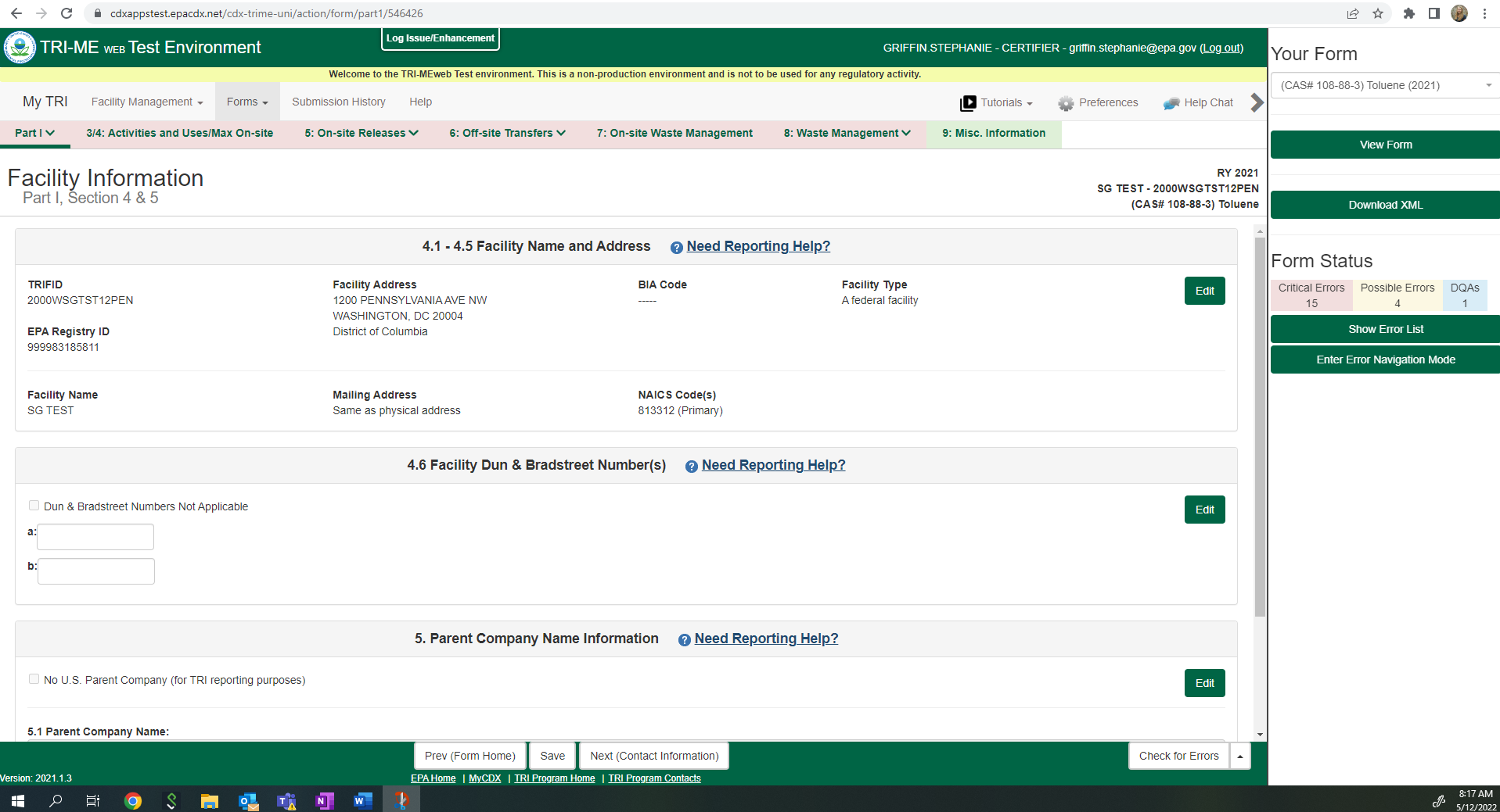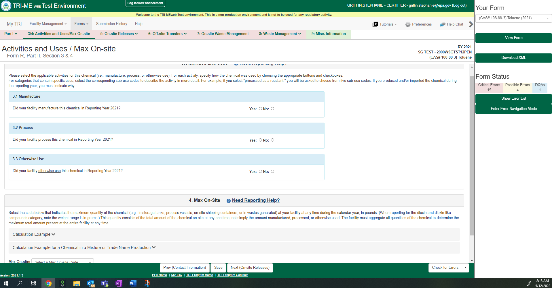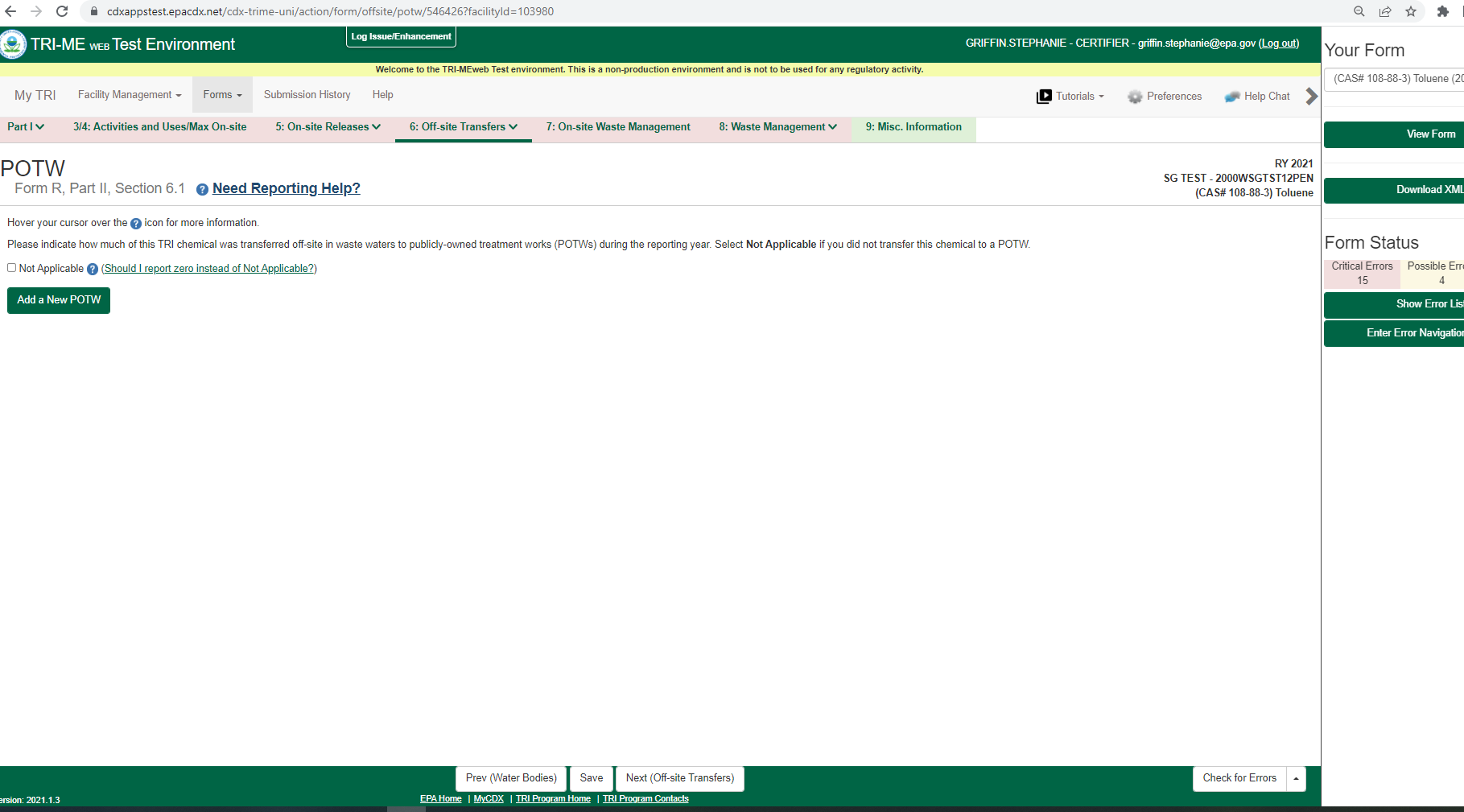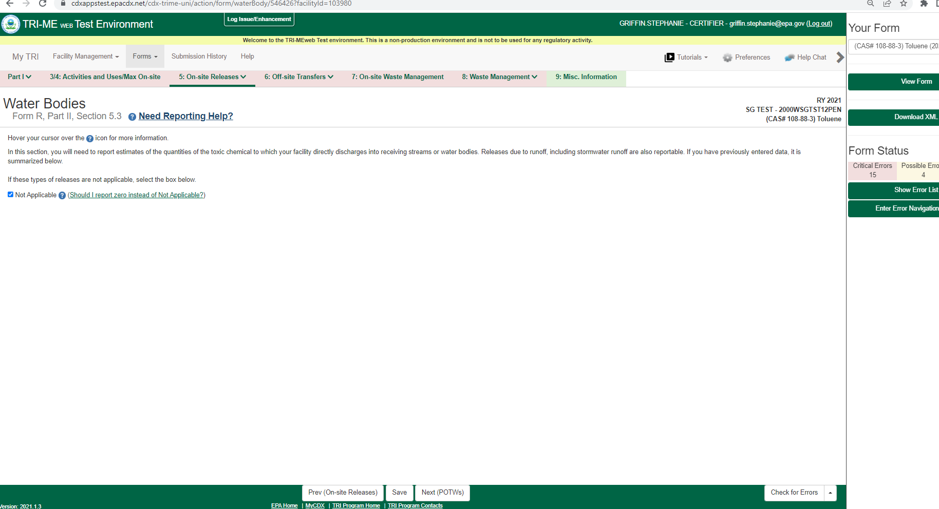 Toxic Chemical Release Reporting (Non-substantive Change)