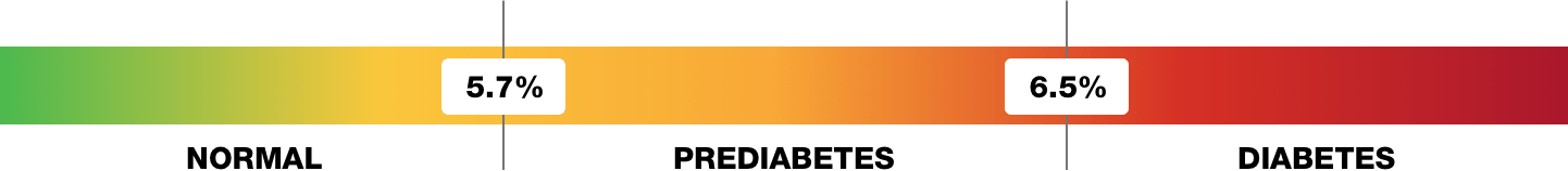 If your A1C level is between 5.7 and less than 6.5%, your levels are in the prediabetes range.