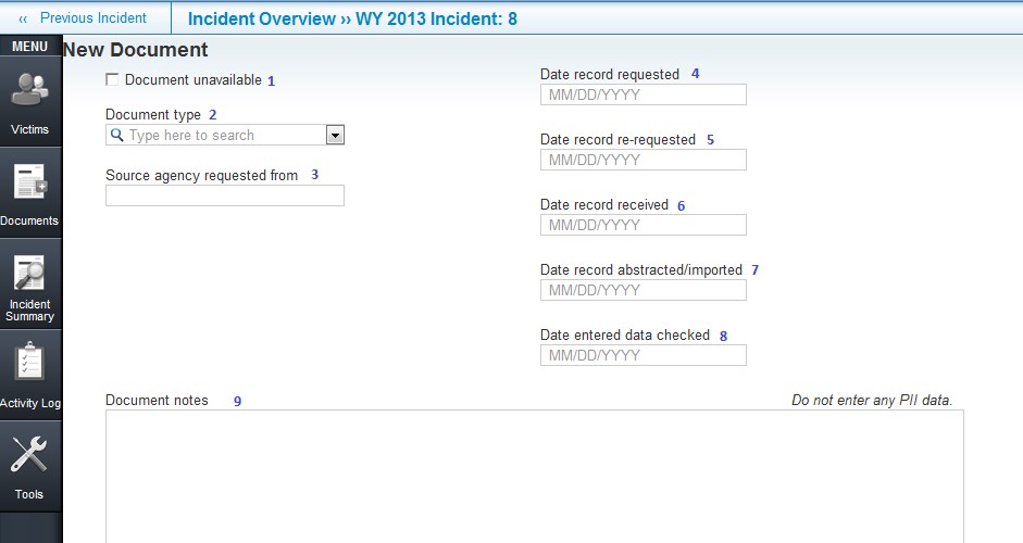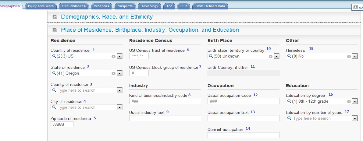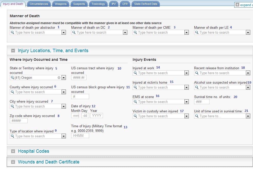 NVDRS Web-based Data Entry (Sample Screenshots of System)