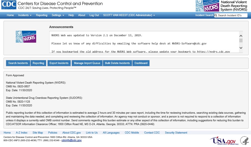 XXI. Import Page: Available to states to import information from death certificates, including ICD-10 and Coroner/Medical Examiner records. One new option added, the ability to identify the incident types for casing being imported.