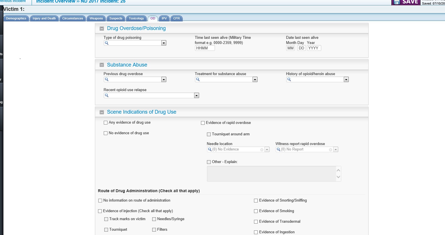 There is now a “templates” feature that may assist in entering tox data that comes to abstractors in standardized formats. State administrators can create toxicology templates, and then abstractors can add a template to a victim record by clicking the “apply template” button on the toxicology tab.