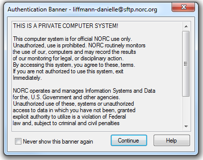 If you do not already have an SFTP program installed on your system, please see Appendix 1 for NORC’s preferred SFTP. If you do have an SFTP client please see Appendix 2, which lists SFTP clients that are compatible with NORC’s SFTP. If the SFTP client that you use is not on this list, please download the preferred SFTP client from Appendix 1.