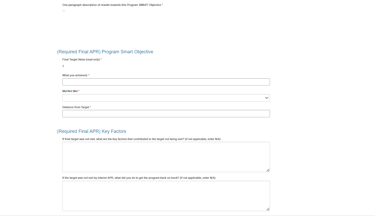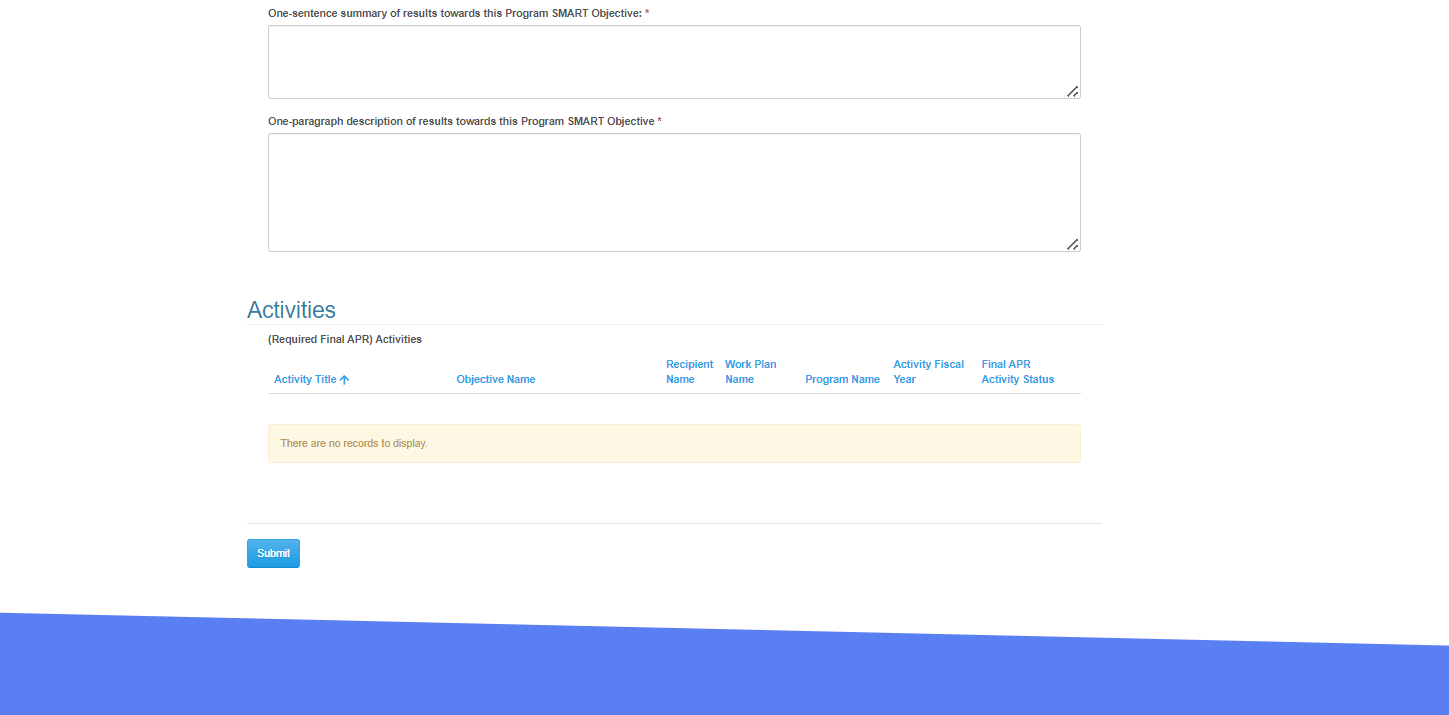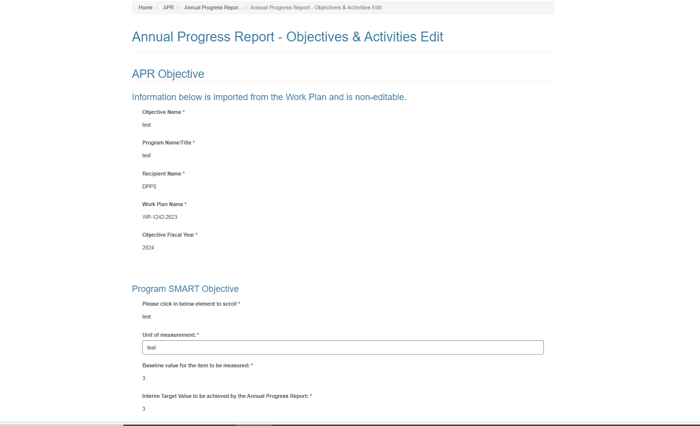 Attachment H: Annual Progress Report Screenshots