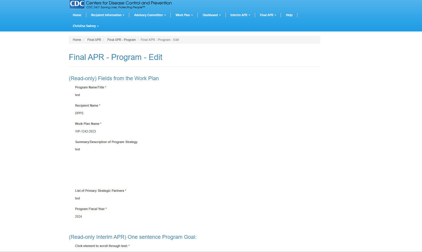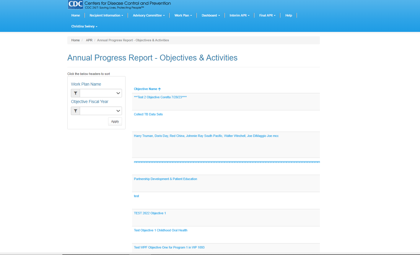 Annual Progress Report (screenshot)