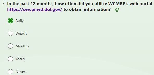 Our records indicate you are successfully billing for services provided to Office of Workers’ Compensation Programs (OWCP) injured and ill workers. Our interest is to capture your experience interacting with the Workers’ Compensation Medical Bill Processing (WCMBP) system and services. We kindly request your time to answer a few questions. Your feedback will serve to benefit all OWCP providers.