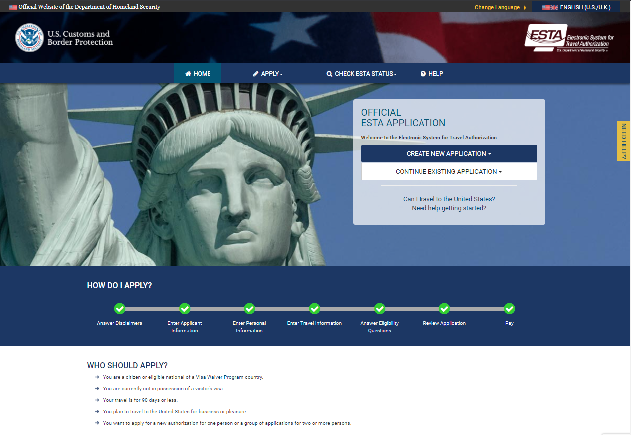 ESTA Link: https://esta.cbp.dhs.gov/