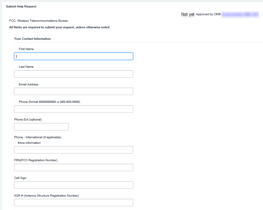 Screenshots of Help Desk Form (e-Support page) OMB Control Number: 3060-1042