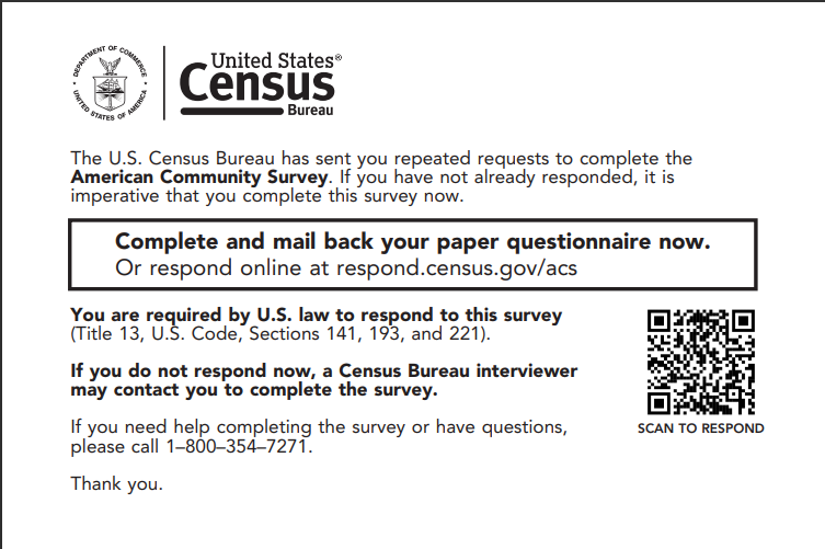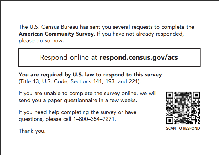 Risley, M., & Berkley, J. (2020). 2018 ACS Mail Materials Test report. U.S. Census Bureau. https://www.census.gov/library/working-papers/2020/acs/2021_Risley_01.html