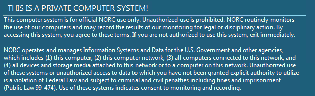 The NORC secure information systems environment has been designed to ensure the functions and protection of data controls meet the confidentiality, integrity and availability standards associates with the NIST 800-53 framework