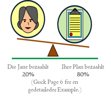 En gfixter Amount (so wie $15) as du bezaahlscht fer en gecovereder Health Care Service, gweehnlich an die Zeit wann du seller Service grigscht (des watt alsemol en “copay” gheese). Des kann varye depending uff was fer Health Care Service du grigscht.