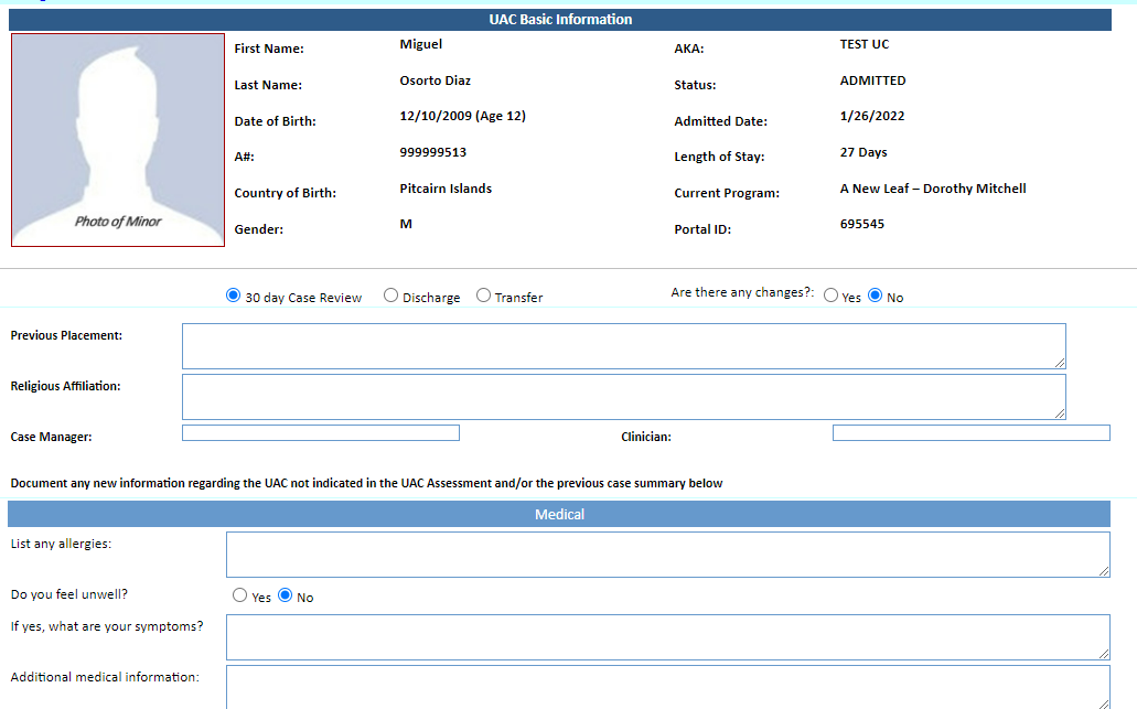 Services Provided to Unaccompanied Alien Children