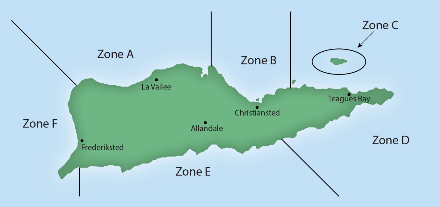 1. Please look at the map of the USVI and the boundaries of each zone. Which zone did you most often use for each activity? {supports ‘participation in reef activities’ indicator}