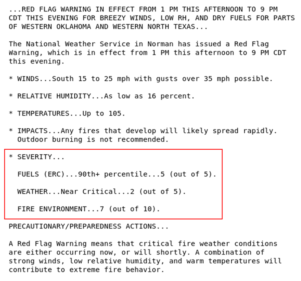 Do you think there should be more probabilistic information added to this Red Flag Warning—something else that might help in your decision making? Is yes, what else could or should be added?