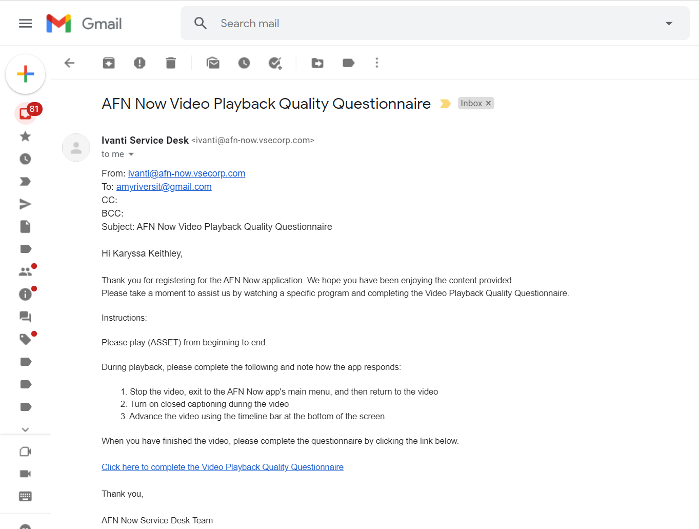 Now Service Desk Questionnaire