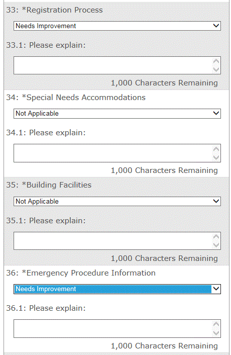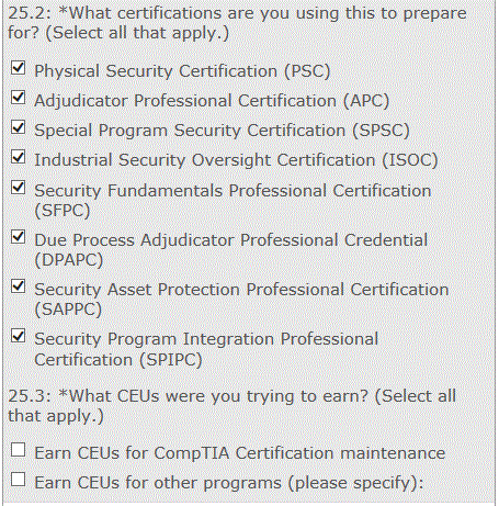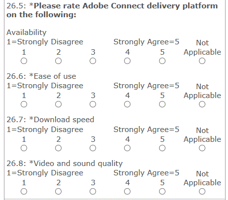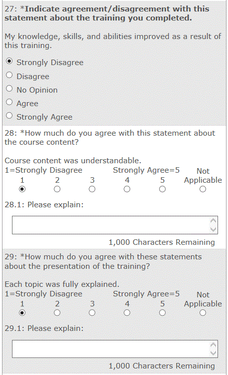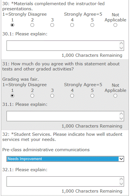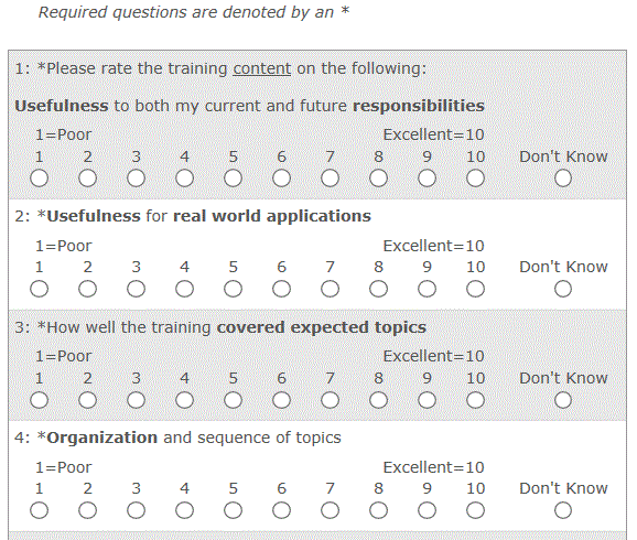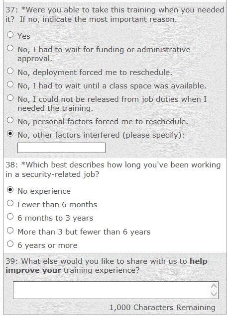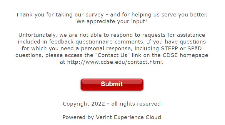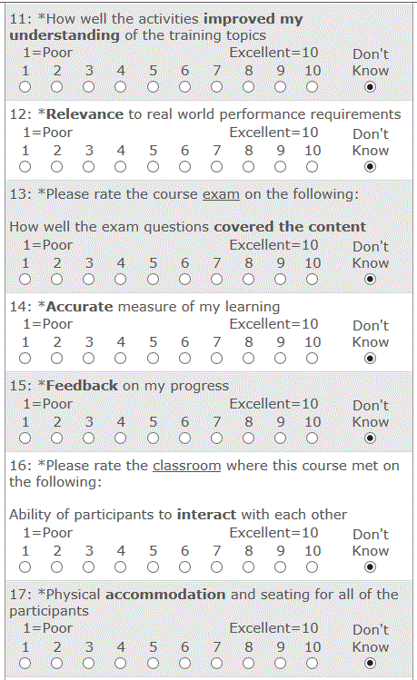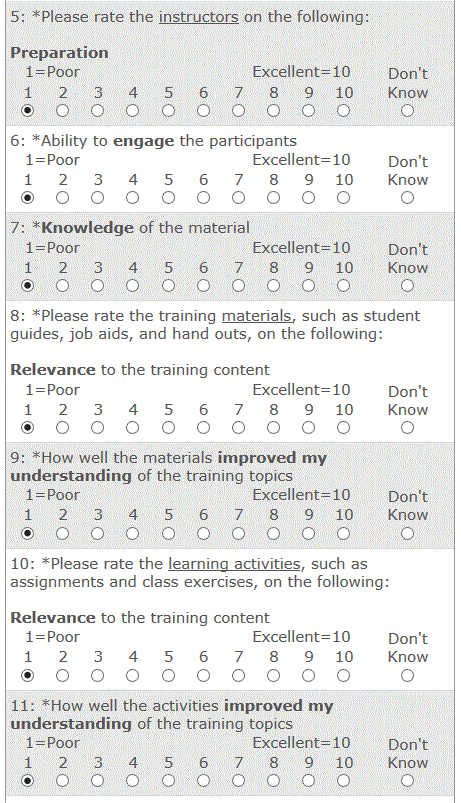 CDSE Instructor Led Class Student Evaluation Survey Screen