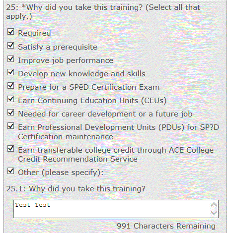 The screen capture images that follow show ALL of the questions included in the survey. Questions numbered with decimals (25.1, 25.2, 25.3, 26.1, 26.2, 26.3, 26.4, 26.5, 26.6, 26.7, 26.8, 28.1, 29.1, 30.1, 31.1, 32.1, 33.1, 34.1, 35.1, and 36.1) are only displayed when the preceding response option is selected, triggering the display logic for the sub-question. For example, selecting the response option “Other, please specify.” triggers display of a follow-up question and open-ended response text box.