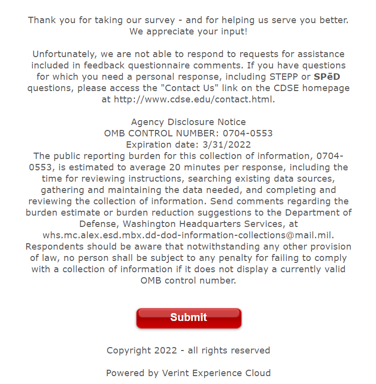 An example of the survey can be viewed online at the following generic URL containing placeholder course ID information: