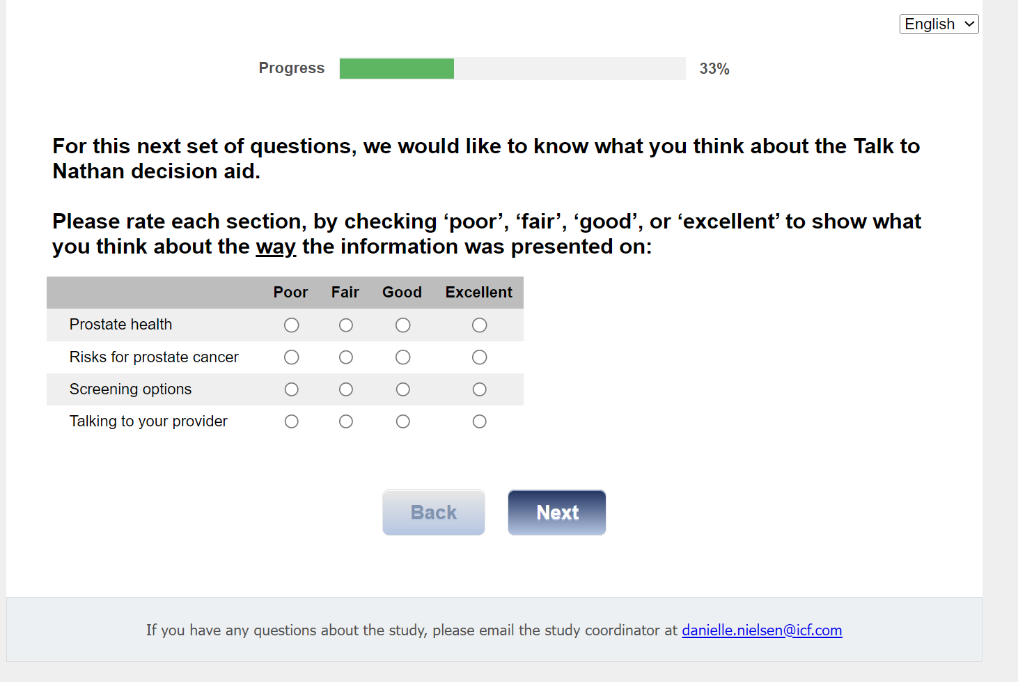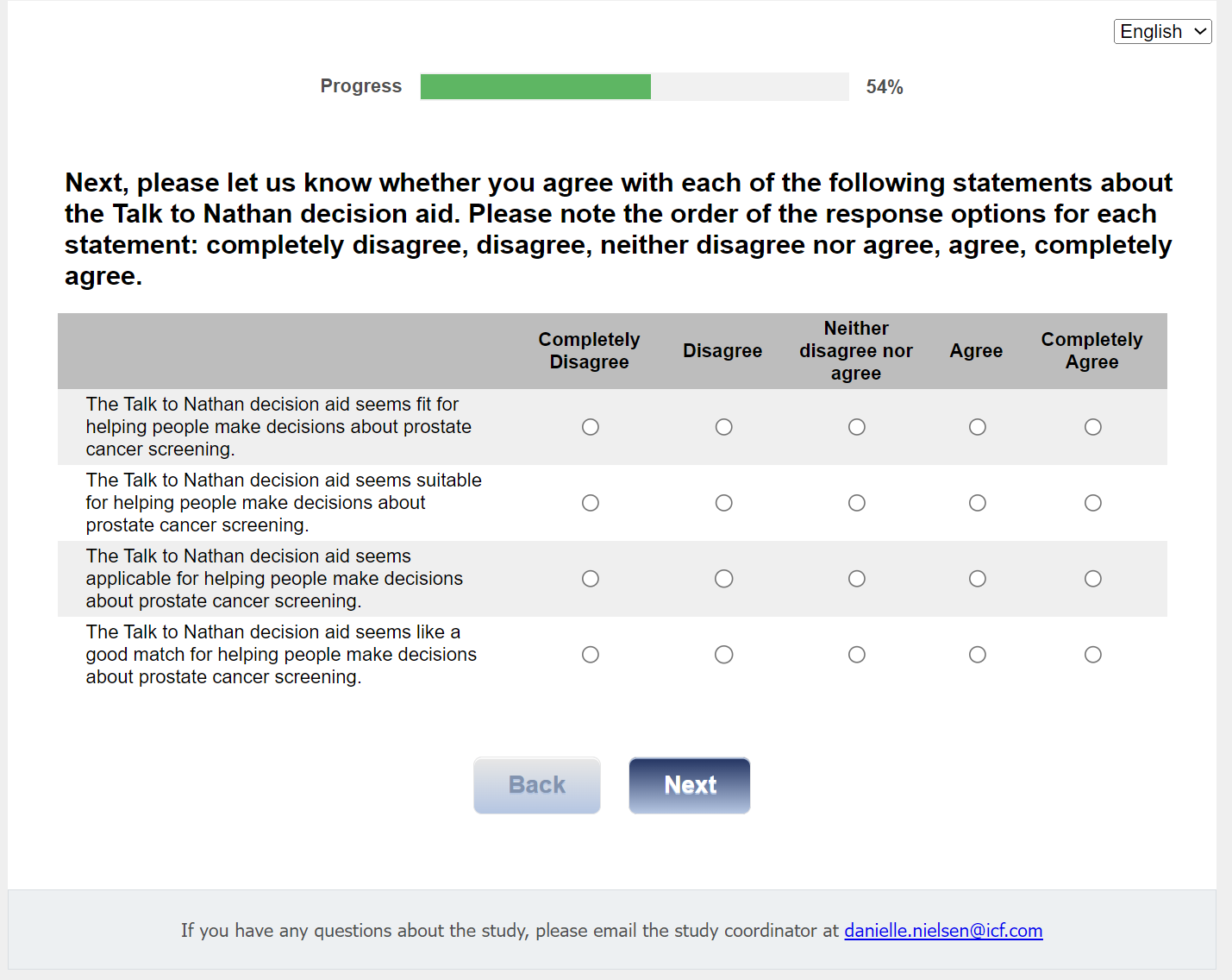 For this first set of questions, we would like to know what you think about the Talk to Nathan decision aid.