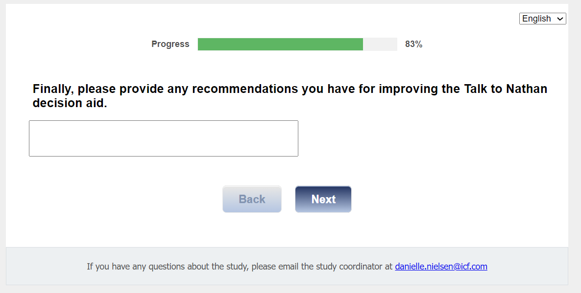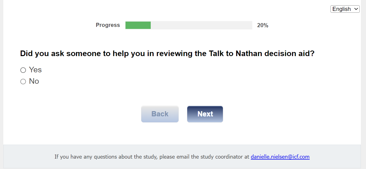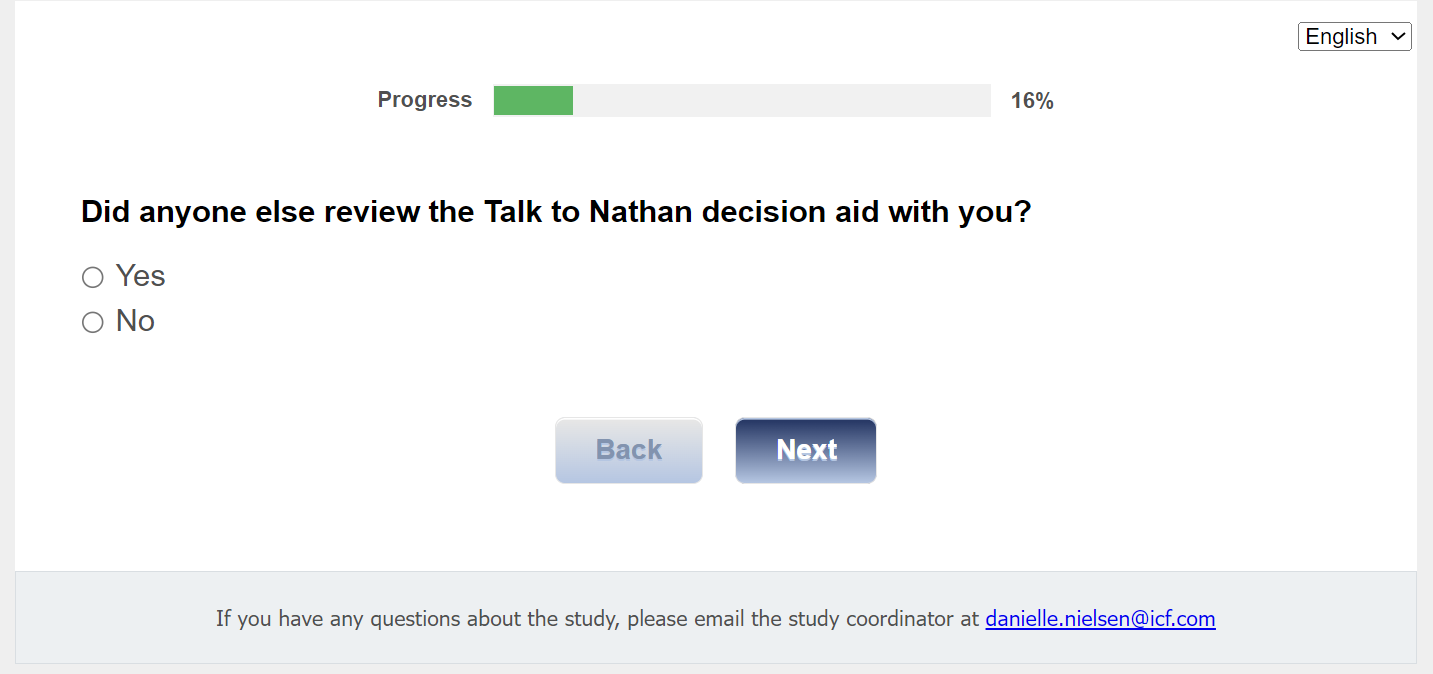 For this next set of questions, we would like to know what you think about the Talk to Nathan decision aid.