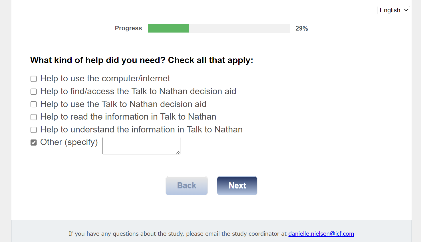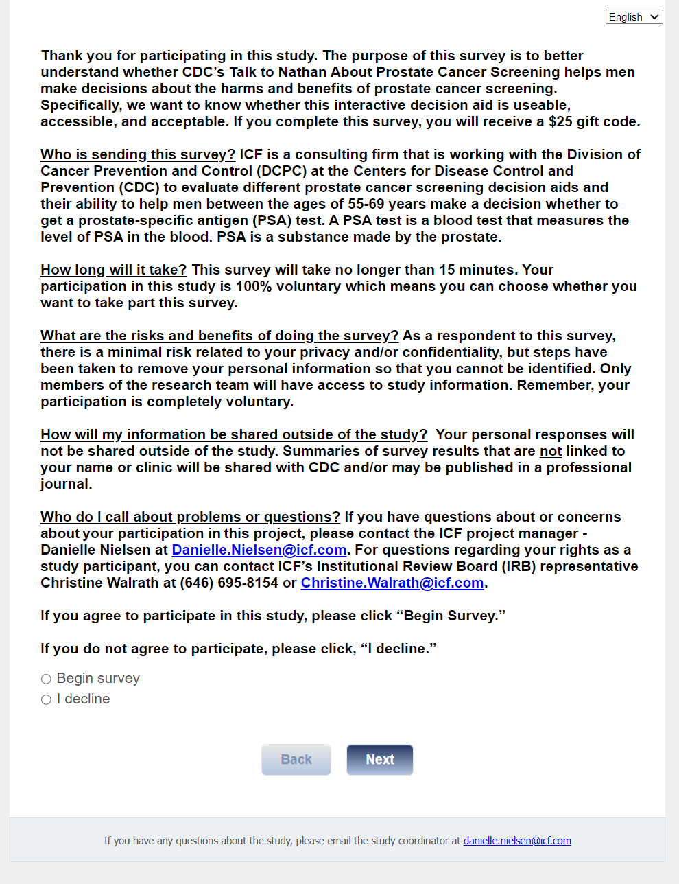 Footer Text: If you have any questions about the study, please email our study coordinator at danielle.nielsen@icf.com