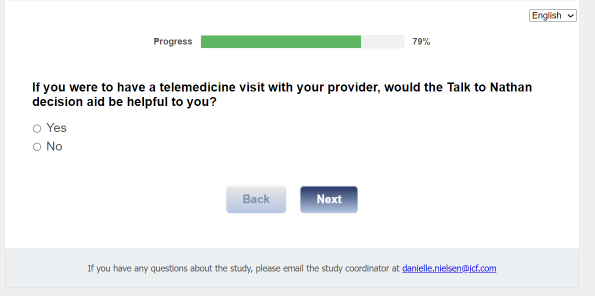 If you were to have a telemedicine visit with your provider, would the Talk to Nathan decision aid be helpful to you?