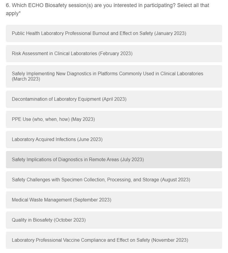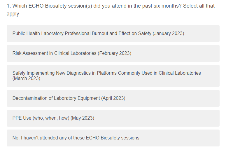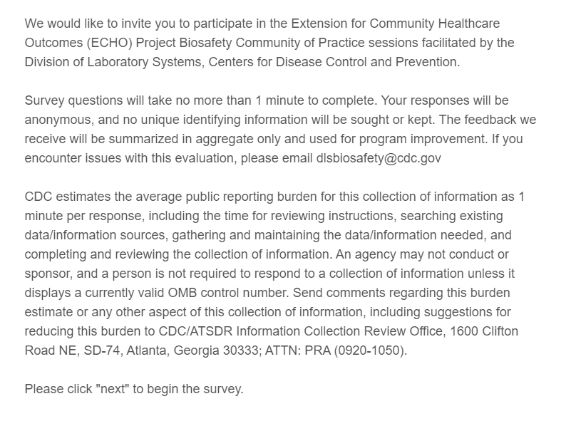 Survey 3: CDC Biosafety ECHO Follow-up Surveys