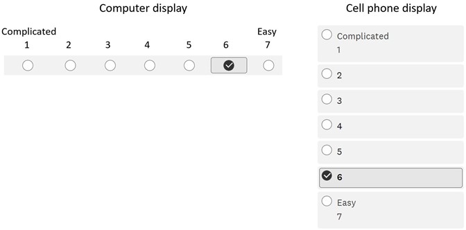Example: Both of the responses below would mean that you rate the eFSAP information system as more "Easy" than "Complicated."