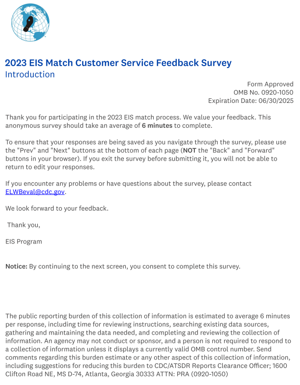 7. 2023 EIS Match Customer Service Feedback Survey Screenshots