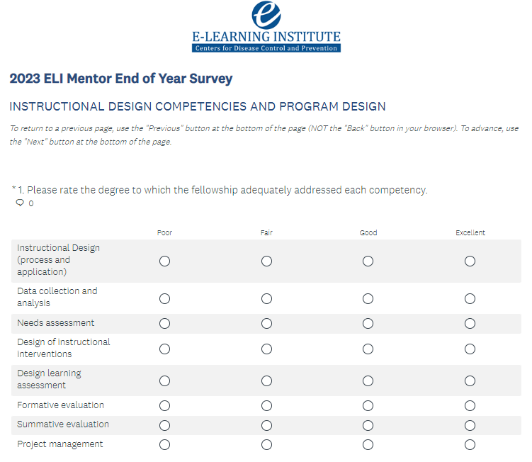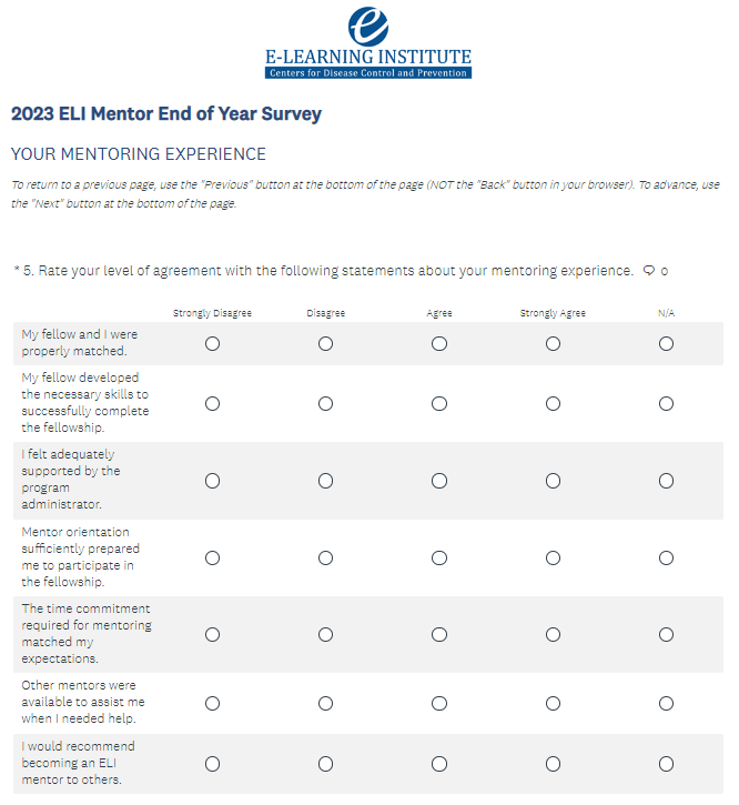 Attachment 4: ELI Mentor End of Year Survey – Survey Monkey