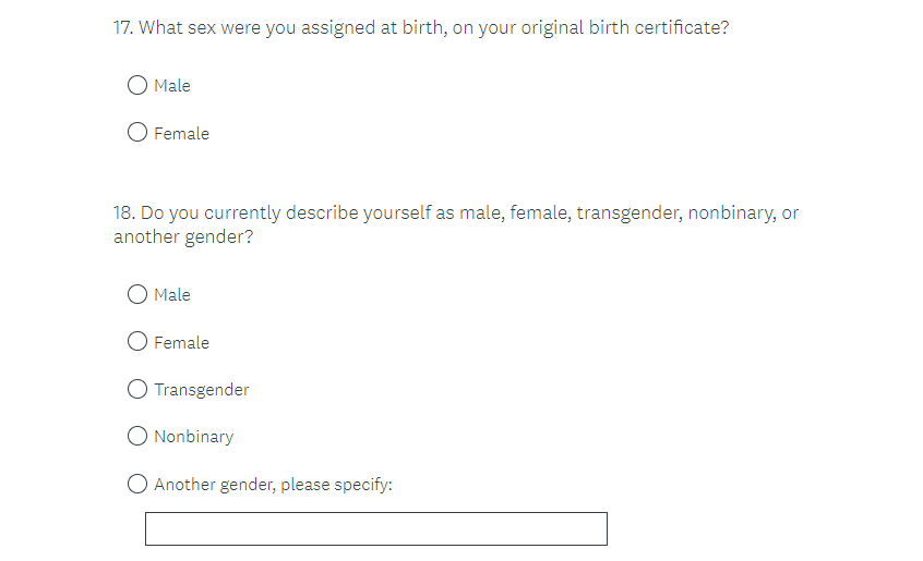 Questions 19-27 (also potentially labeled 10-19 or 8-17) are for all respondents. These questions are all voluntary and may be skipped.