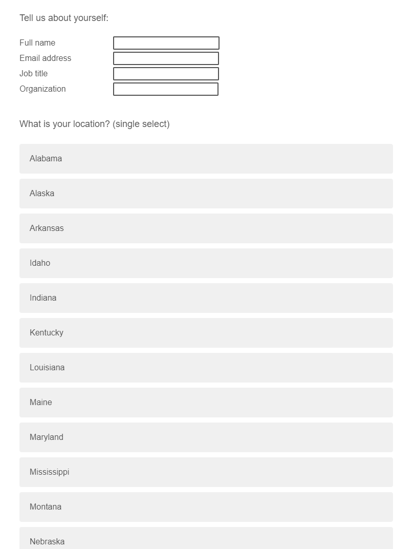 Public reporting burden of this collection of information is estimated to average 15 minutes per response, including the time for reviewing instructions, searching existing data sources, gathering and maintaining the data needed, and completing and reviewing the collection of information. An agency may not conduct or sponsor, and a person is not required to respond to a collection of information unless it displays a currently valid OMB Control Number. Send comments regarding this burden estimate or any other aspect of this collection of information, including suggestions for reducing this burden to CDC/ATSDR Reports Clearance Officer, 1600 Clifton Road NE, MS H21-8, Atlanta, Georgia 30333; ATTN: PRA 0920-1050