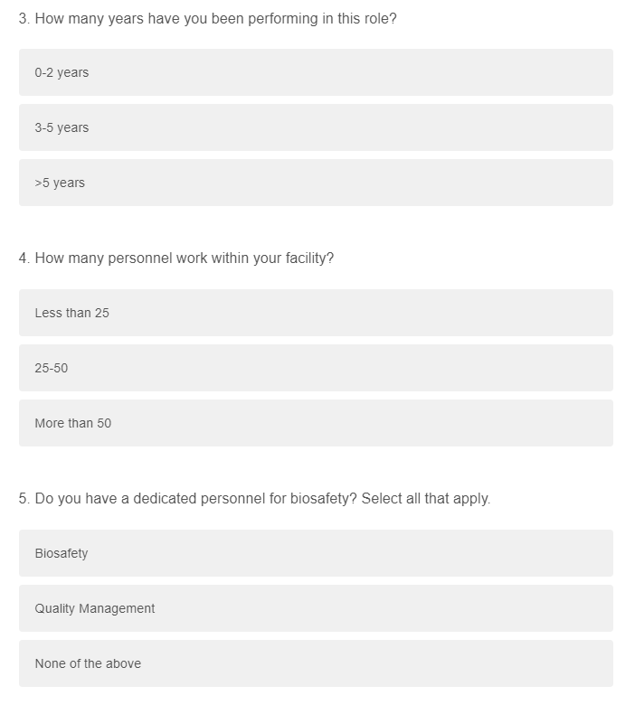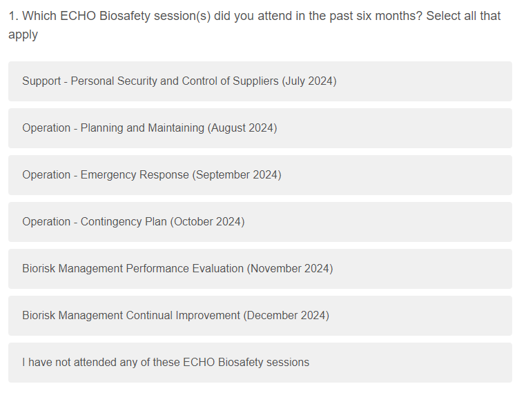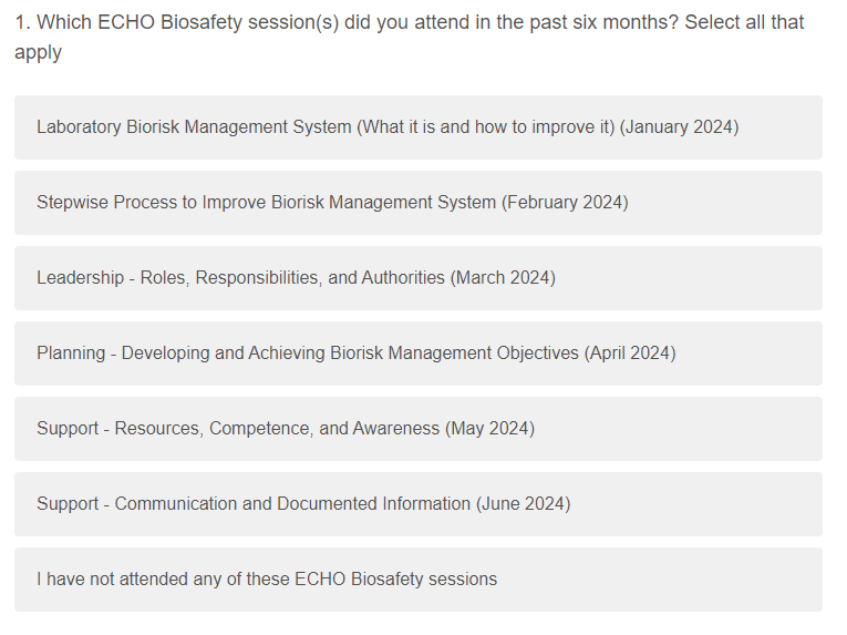 Survey 3: CDC Biosafety ECHO Follow-up Surveys